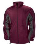 100% brushed tricot polyester • front and back contrast inserts with piping • open bottom with bungee cord and toggles • two front pockets • covered elastic cuffs • embroidered Badger logo on left sleeve • Sizes: S-L