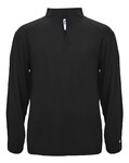 94% polyester/6% spandex moisture management antimicrobial fabric • 6-oz. • self fabric collar with 7" locking zipper • Badger sport paneled shoulder for maximum movement • Paneled sleeve • open bottom • embroidered Badger logo on left sleeve • Sizes: XS-4XL, see colors