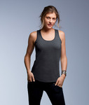 preshrunk 50% polyester/25% combed ring-spun cotton/25% rayon • 4.7 oz. • 30 singles • semi-fitted contoured racerback silhouette with side seams • bound-on self-fabric neck and armholes • double-needle curved bottom hem • tear-away label • Sizes: XS-2XL