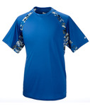 100% polyester moisture-management antimicrobial performance fabric • 3.5-oz. • sublimated digital side & sleeve panel inserts • Self-fabric collar • Double needle hem • Badger heat seal logo on left sleeve • Sizes: S-4XL, see colors