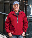 100% nylon shell • breathable • windproof • waterproof shell and zippers • seam-sealed • mesh-lined body and hood • adjustable hood • cuffs and bottom hem • hidden embroidery access for ease in decorating • inside media pocket • Sizes: S-3XL