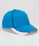 100% polyester • moisture-wicking • breathable • quick-dry • jacquard pattern on crown and visor • structured • mid-profile • 6-panel • crown and visor with contrast piping • sewn eyelets • contrast inserts on visor • self-fabric sweatband • contrast under visor • self-fabric self-adhesive closure4”w x 2”h imprint area • Sizes: one size