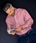 100% cotton • 4 oz. • non-iron treatment • button-down collar • left chest pocket • single-needle armholes • double-needle side seams • adjustable cuffs • Sizes: S-2XL